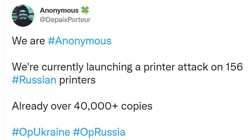 Anonymous hacks unsecured printers to send anti-war messages across Russia